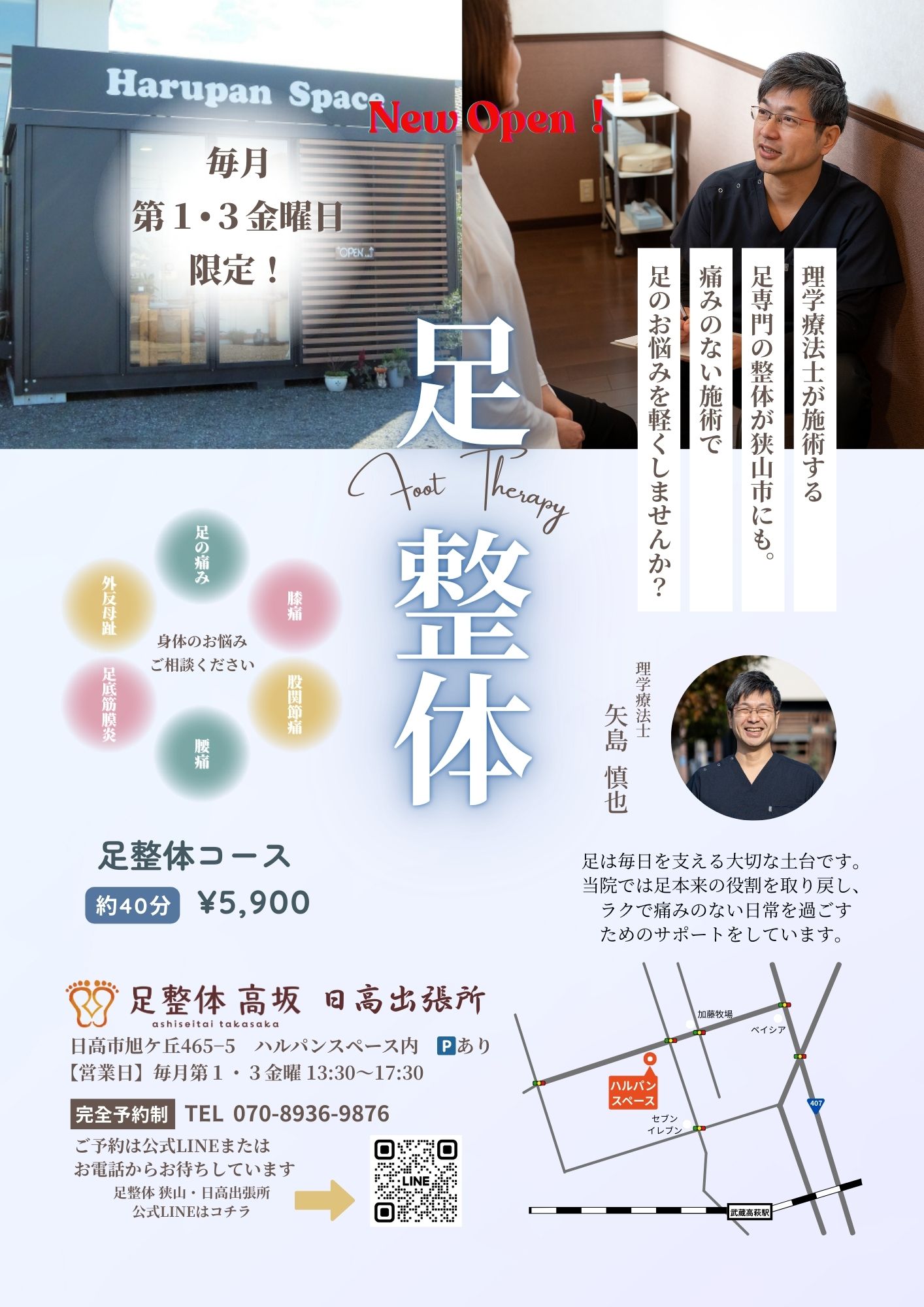 日高近辺にお住まいで足・膝・股関節などに不調のある方、ご予約お待ちしています。