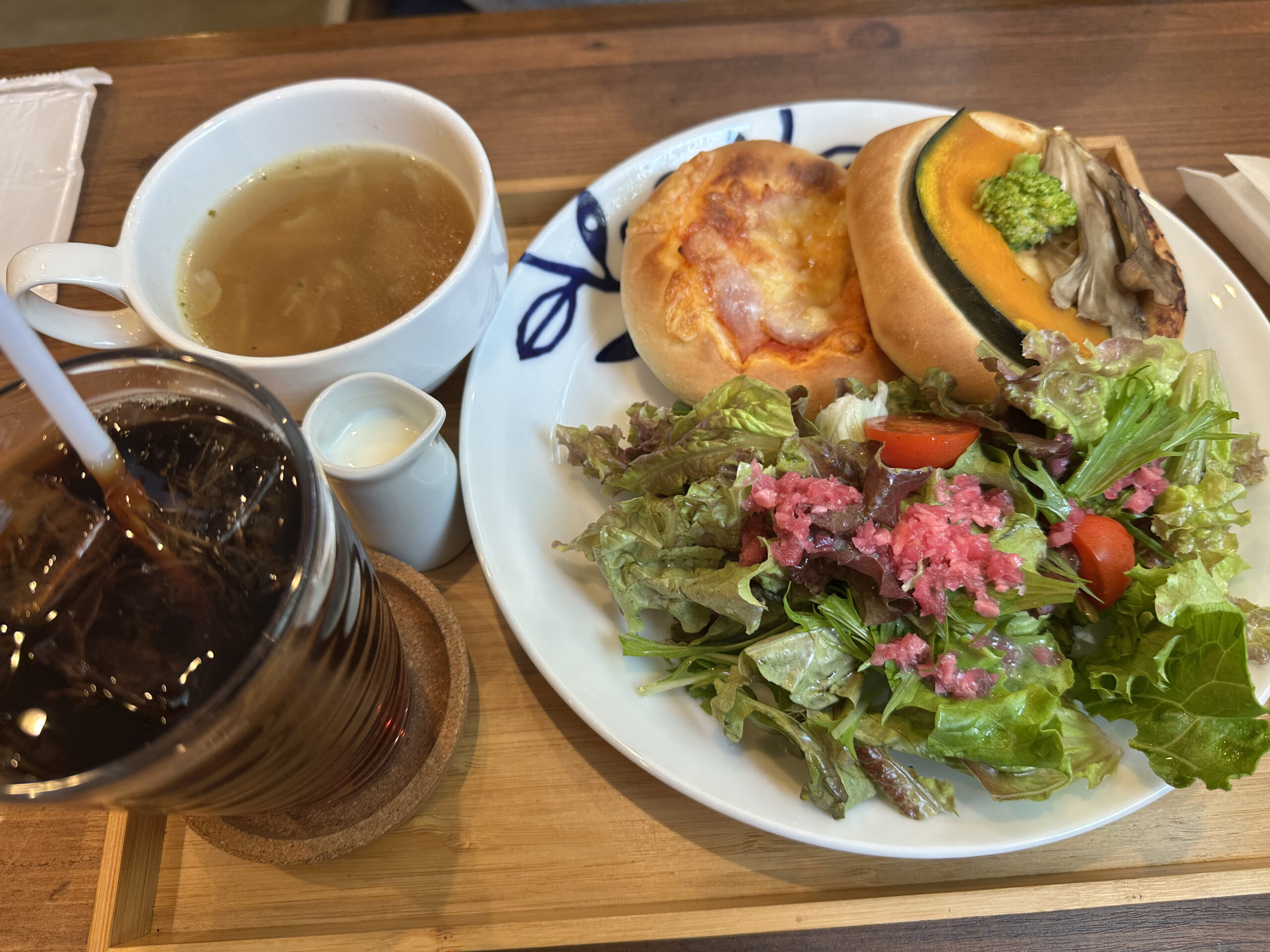 このハルパンカフェ、しいたけパンが名物でとても美味しい。