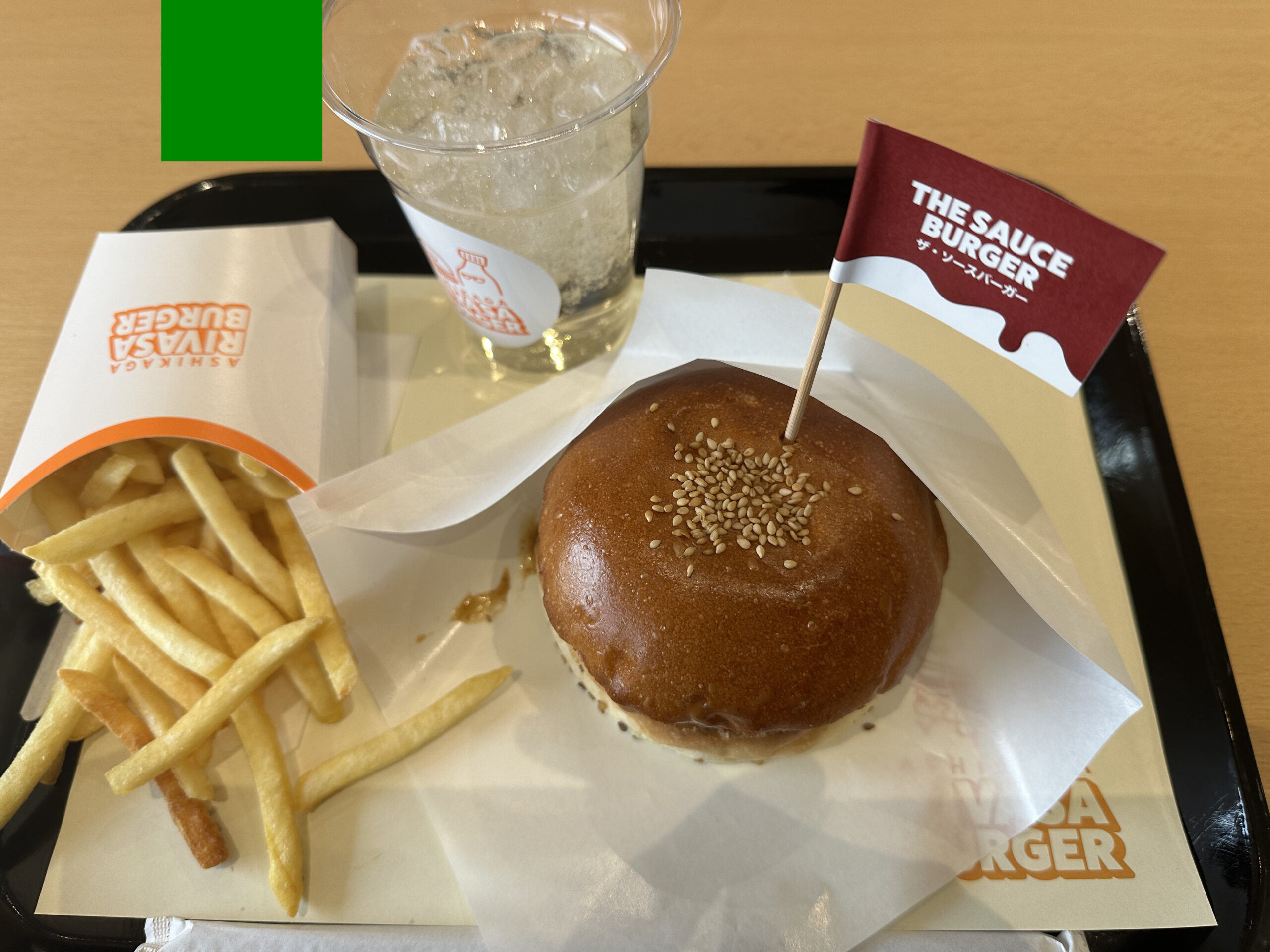 ご当地ソースがたっぷりかかった「ザ・ソースバーガーセット」を食べました。