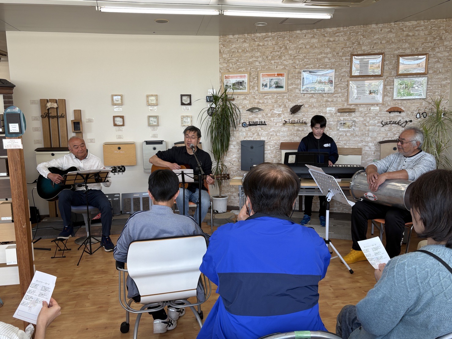 僕と長男、僕の父、ビズガーデニングの社長の4人で即席バンドを組んで。